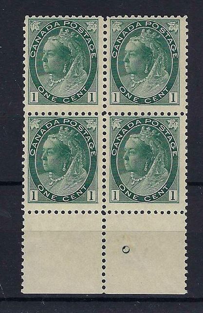 Canada | 152 | 4 | 1c deep green/toned paper in a bottom marginal block of 4. | UMM | £160.00 | ||
