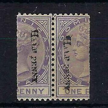 Dominica | 12 | 2 | 1/2d in black on half 1d in a horizontal pair. | UMM | £135.00 | ||