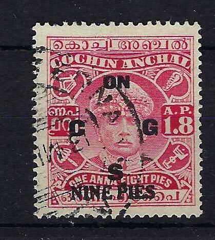 Indian Feudatory States ~ Cochin | O59 | 9p on 1a 8p carmine Type 20. | FU | £25.00 | |||
