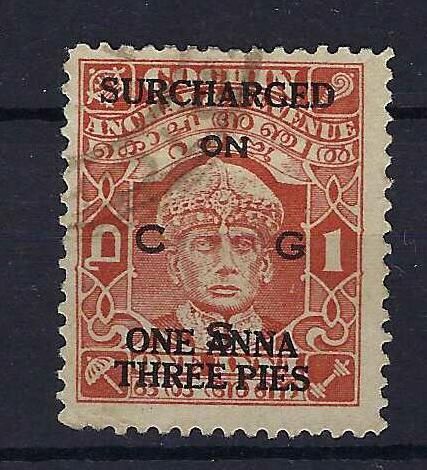 Indian Feudatory States ~ Cochin | 83 | 9p on 1a brown-orange Type 23. | FU | £25.00 | |||