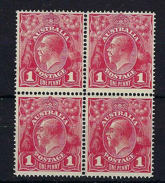 Australia | 21 | 4 | 1d carmine red (Die I) in a left marginal block of 4 three of which are UM. | LMM | £145.00 | ||