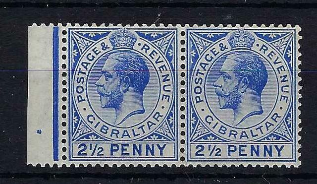 Gibraltar | 79/79a | 2 | 2 1/2d deep bright blue in a left marginal horizontal pair one of which has the LARGE 2 IN 1/2 variety. | UMM | £275.00 | ||