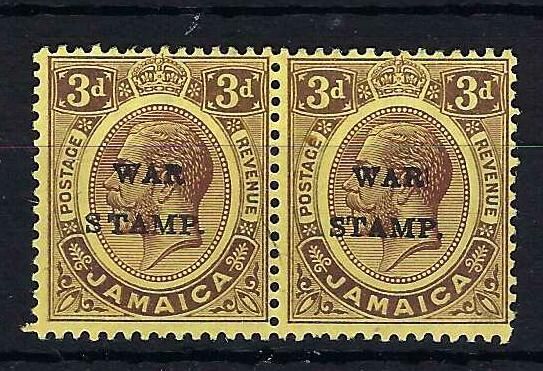 Jamaica | 72/72c | 2 | 3d purple/lemon Type 20 in a horizontal pair one of which has the STOP INSERTED BY HAND variety. | VLMM | £160.00 | ||