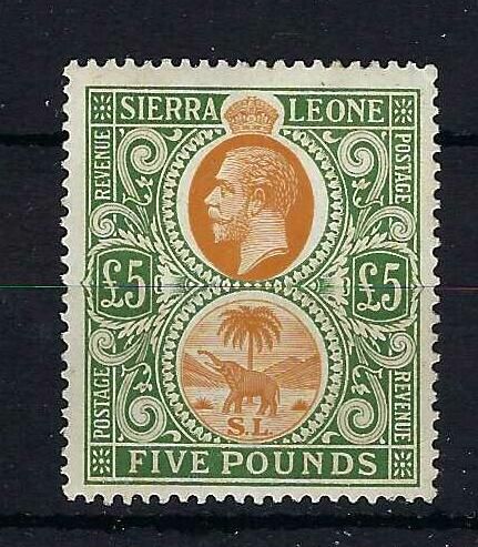 Sierra Leone | 148 | £5 orange & green. One tiny gum tone. | VLMM | £1,995.00 | |||