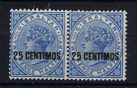 Gibraltar | 18/18b | 2 | 25c on 2 1/2d bright blue in a horizontal pair one of which has the BROKEN N variety. | LMM | £195.00 | ||