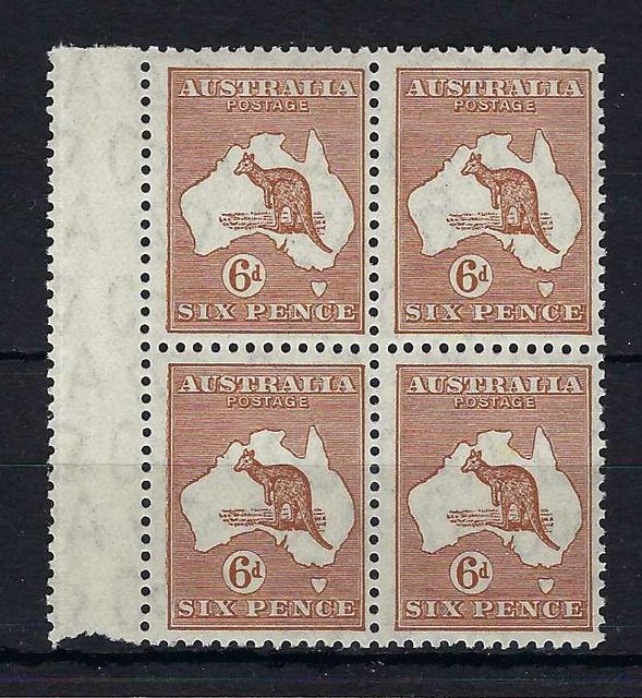 | Australia | 130 | 4 | 5d orange brown in a JOHN ASH IMPRINT block of 4 three of which are UMM. Reduced from £90.00 | VLMM | £63.00 | |||