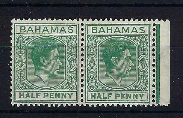 | Bahamas | 149/149a | 2 | 1/2d bluish green in a horizontal pair one of which has the ELONGATED E variety. | UMM | £165.00 | |||