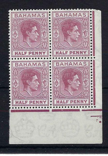 Bahamas | 149e/149ec | 4 | 1/2d brown-purple in a bottom right corner block of 4 one of which has the ELONGATED E variety. | UMM | £120.00 |