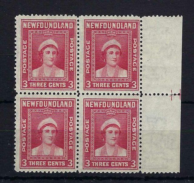 Canada-Newfoundland | 278/278b | 4 | 3c carmine in a right marginal block of 4 one of which has the DAMAGED A variety. | UMM | £60.00 | ||