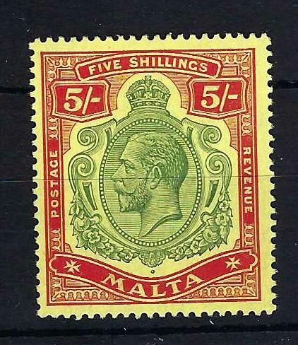 Malta | 88 | 5/- green & red/yellow. | UMM | £100.00 | |||