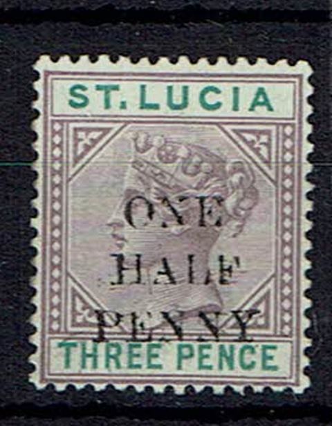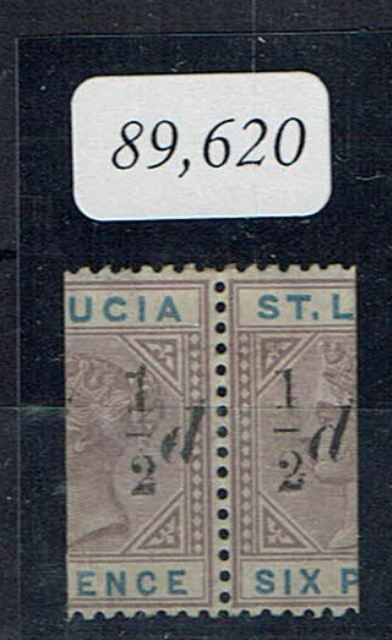 St Lucia | 54e | 1/2d on half of 6d dull mauve & blue, thick "1" with sloping serif. | FU | was £80.00 £56.00 | ||||