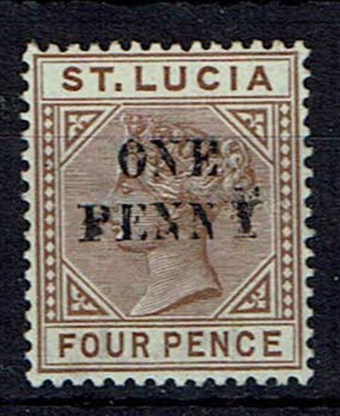 St Lucia | 34a | 1885 4d brown with TOP LEFT TRIANGLE DETACHED variety. | MM | was £495.00 £396.00 | |||