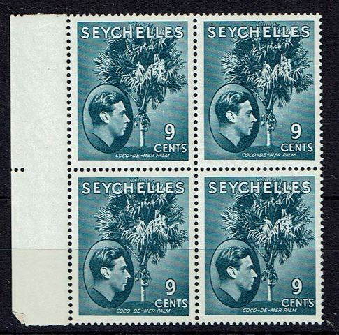 Seychelles | 138a | 4 | 9c grey blue in a left marginal block of 4. | UMM | was £100.00 £75.00 |